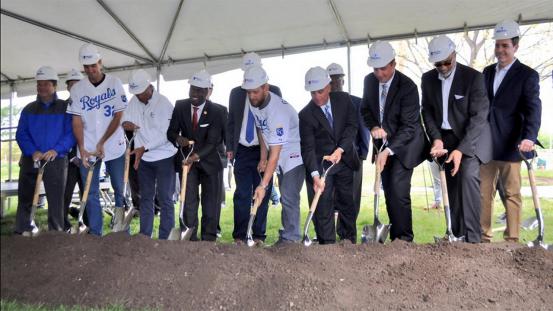 KANSAS CITY — As the movers and shakers involved with the $14 million Kansas City MLB Urban Youth Academy project put on hard hats and grabbed silver shovels for a groundbreaking ceremony Wednesday morning, the sun broke through the clouds at Parade Park.