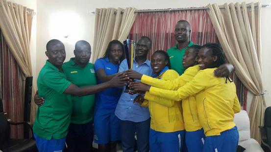Kigali, Rwanda, April 19, 2016 – Rwanda’s women’s beach volleyball team enjoyed a visit to the Rwandan Embassy in Abuja, Nigeria following their exploits at the CAVB Continental Cup Finals, where they finished second to Egypt in the Nigerian capital.