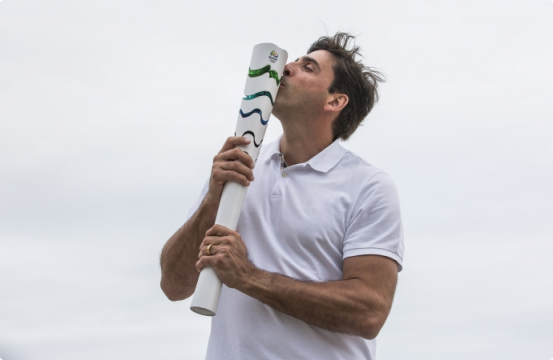 Olympia, Greece, April 21, 2016 – Brazilian volleyball great Giovane Gavio was today given the honour of being the first Brazilian to run with the Olympic Torch as part of the Rio de Janeiro 2016 Olympic Games Torch Relay.