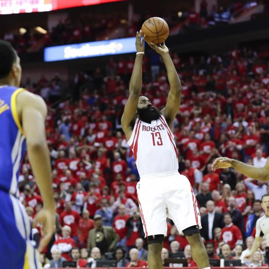 Rockets guard James Harden nailed a jumper to put his team up by one with 2.7 seconds remaining: