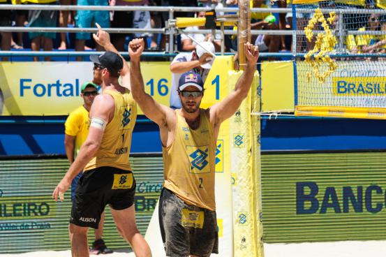 Forteleza, Brazil, April 24, 2016 – Alison Cerutti and Bruno Schmidt continued their strong start to 2016 by winning gold in Forteleza, their third stage win on the Brazilian Beach Volleyball Tour.